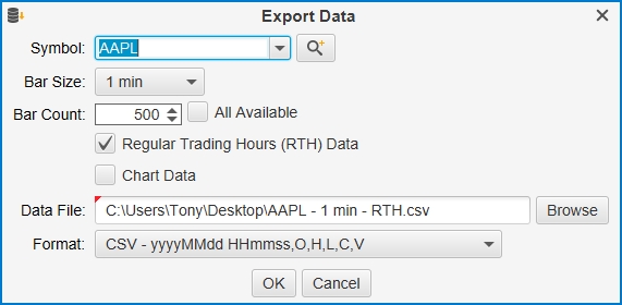 Regular Trading Hours (RTH) Data – Check this to only include bars that are part of the regular trading session
