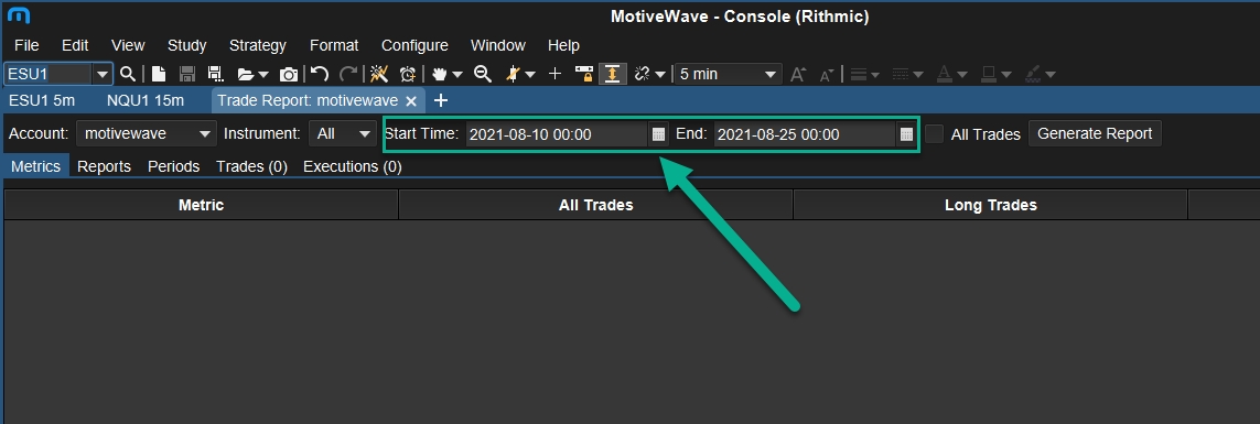 When generating a Trade Report, MotiveWave assumes you are flat at the start date/time. If you had a position open at the start date/time then it will report a closing trade as an opening trade and vice versa, this will result in an incorrect trade report. In order to avoid this, make sure the start date/time are during a period where you were flat.