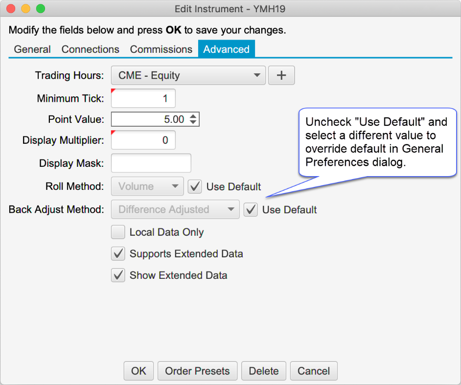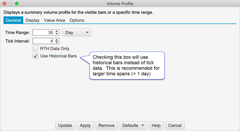 Use Historical Bars – Builds bars using historical minute bars (instead of tick data).
