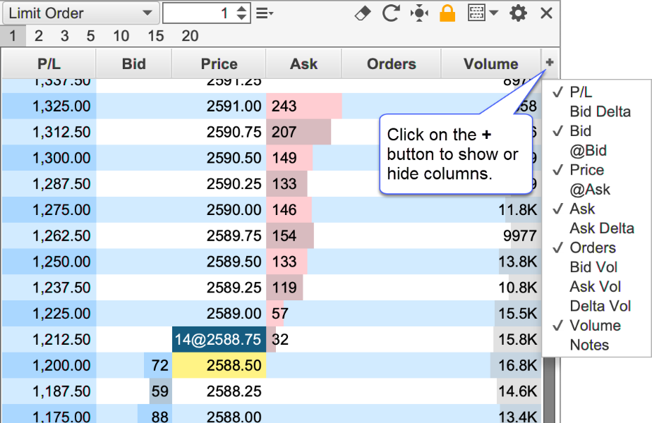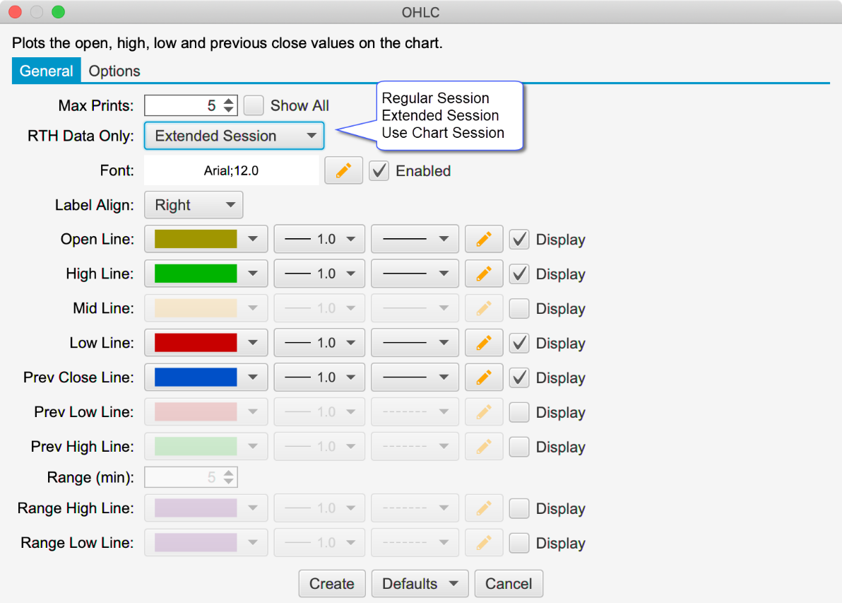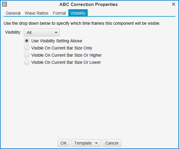Visible On Current Bar Size Or Lower – Sets the visibility to be LTE current bar size.