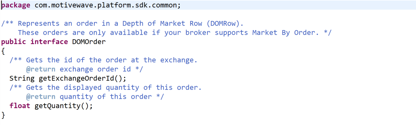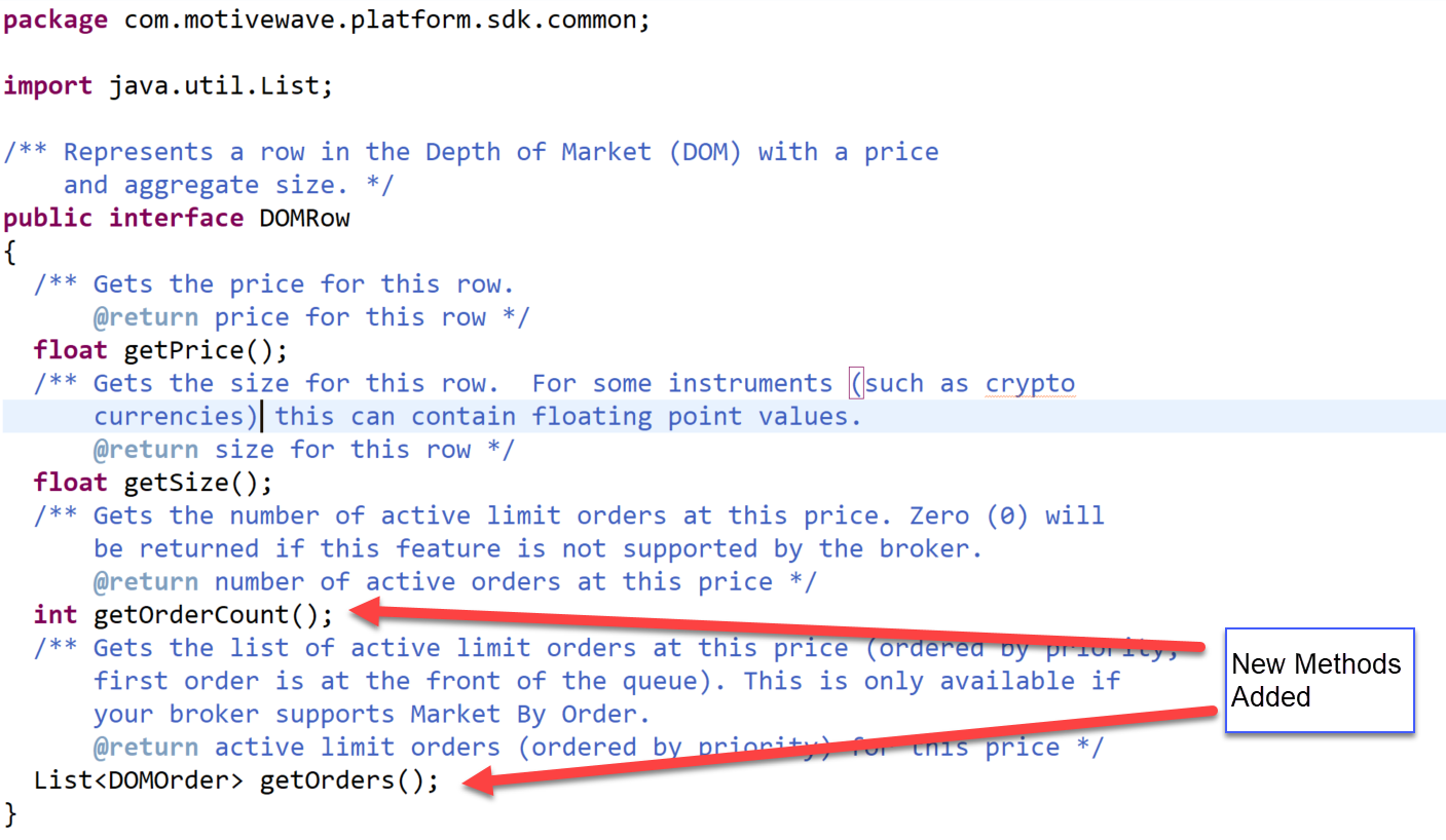 Market by Order information has been added to the Depth of Market (DOM) classes. For each DOMRow, a list of orders (DOMOrder) is available.