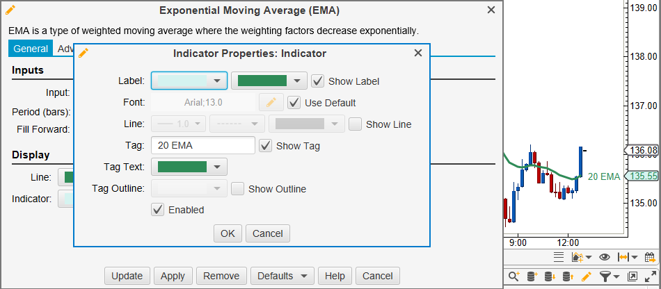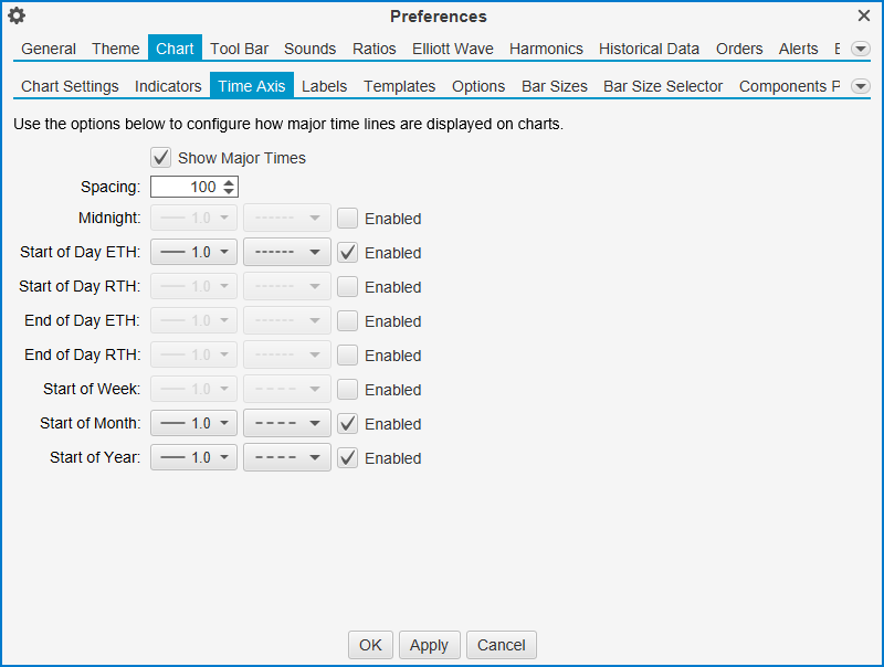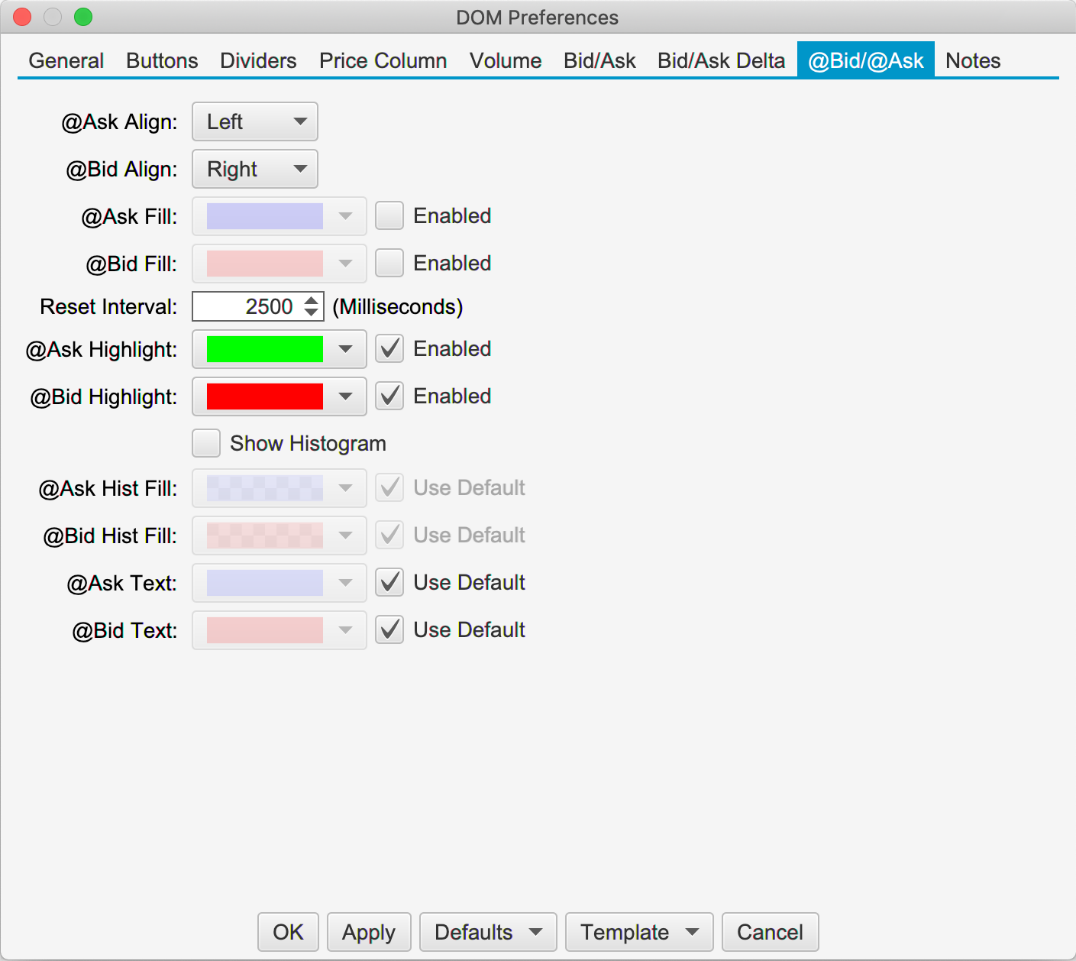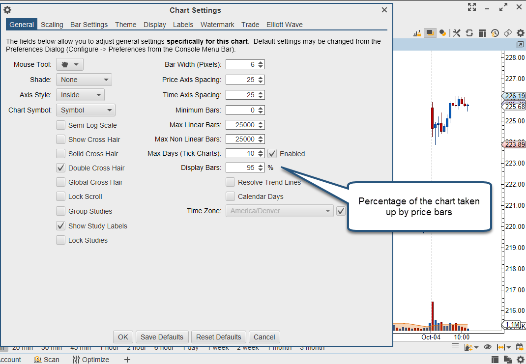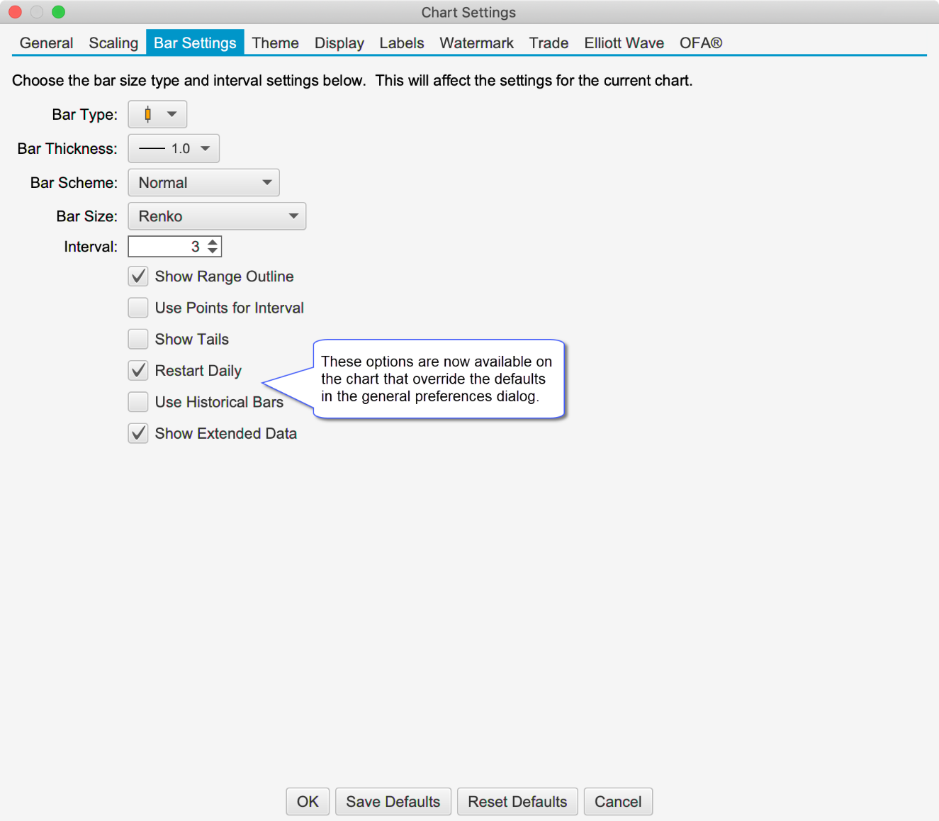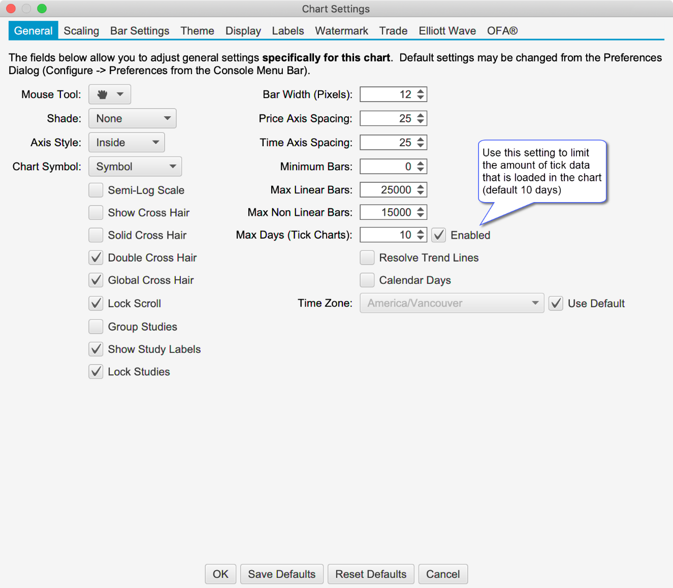 These settings are specific to the chart as opposed to the global settings in the general preferences dialog (Configure -> Preferences from the Console menu bar Historical Data -> Tick Charts).