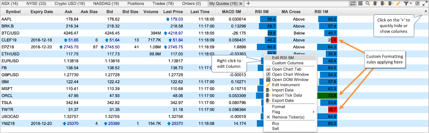 283+ Built-in Studies/Indicators, including Multiple Time Frame Studies, Multiple Instrument Studies (Instrument Overlay/Graph, Spread, Ratio), and ability to Choose a Different Instrument for a Study Graph