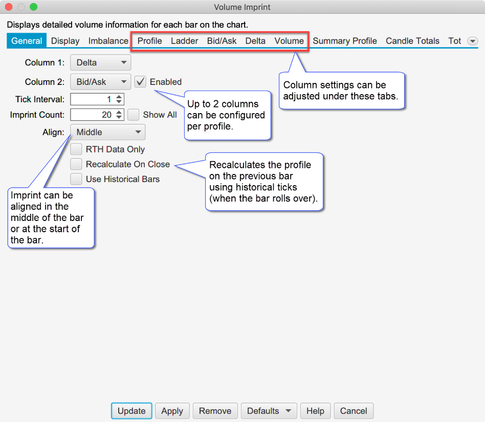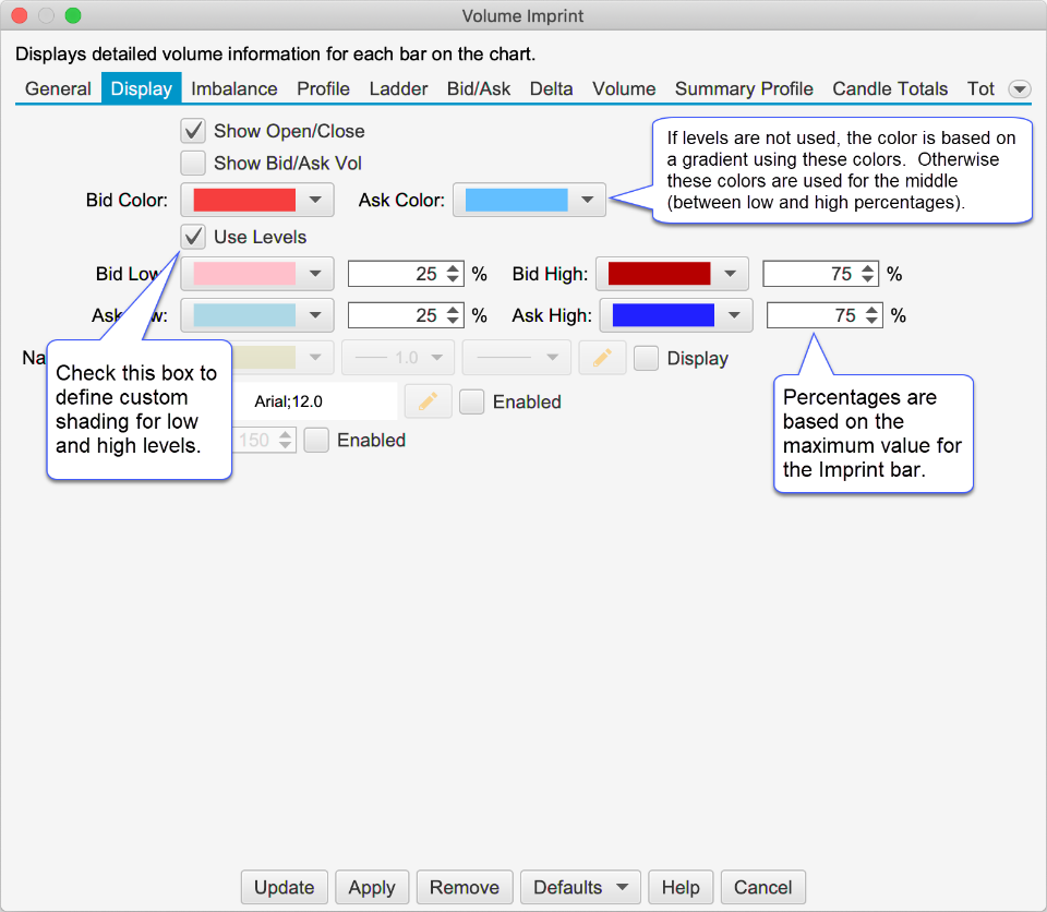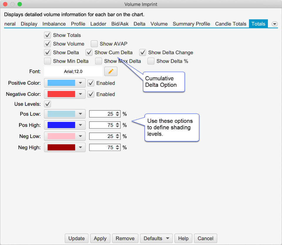 Affected Studies – these options have been turned on for the following studies: Volume Imprint, Delta Volume, Cumulative Delta, Bid/Ask Volume