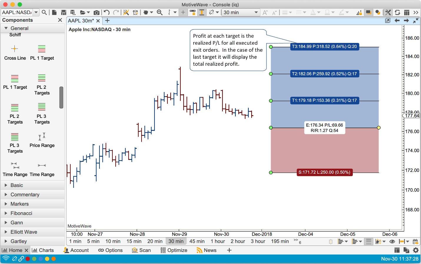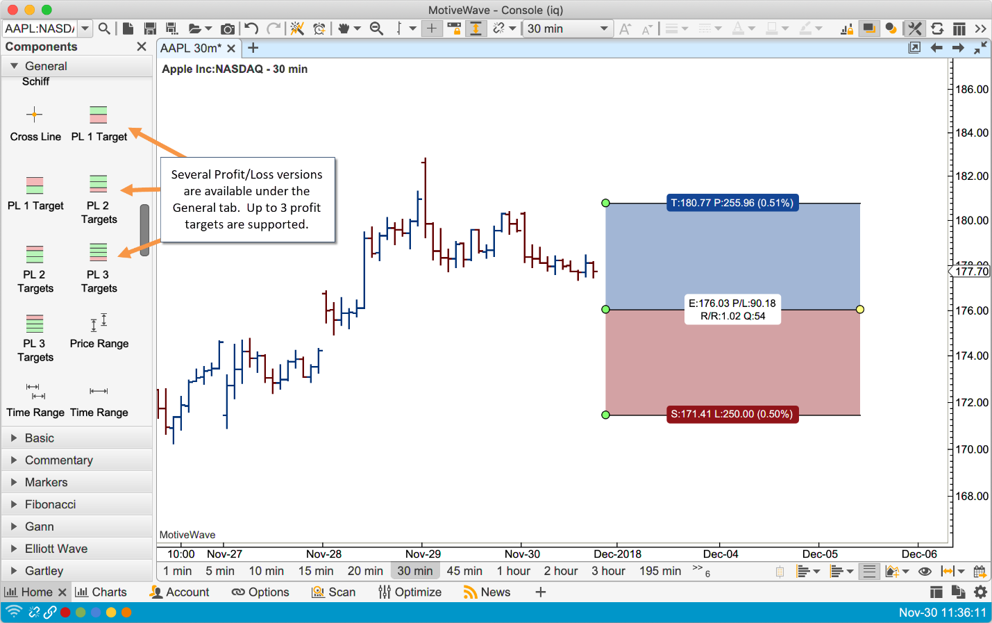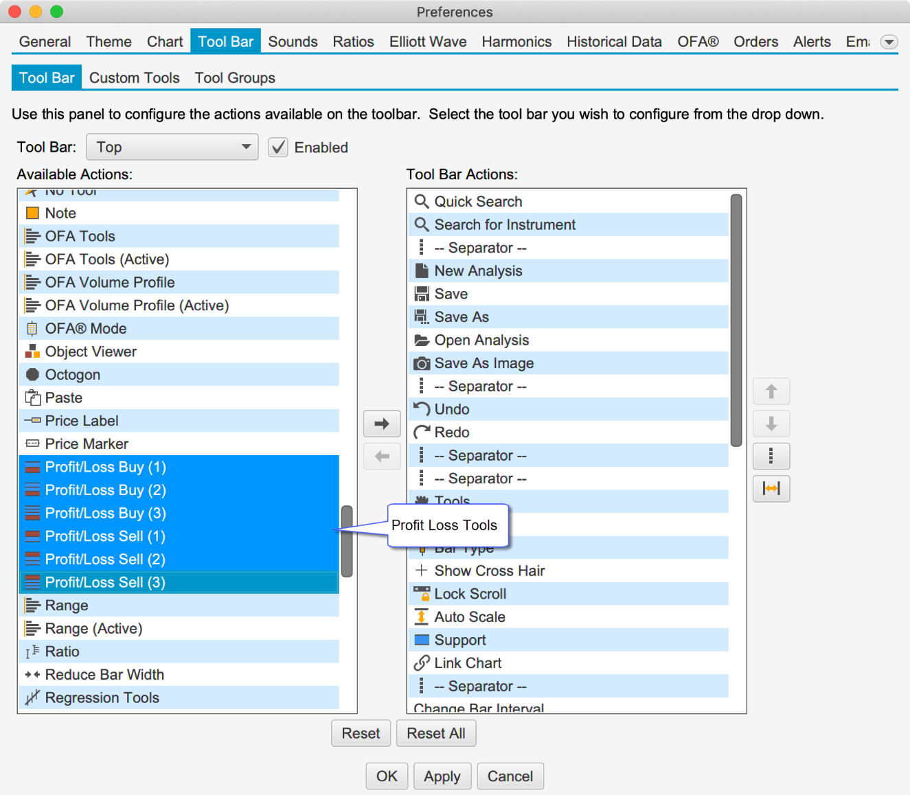 Mouse tools have been added for each of the Profit/Loss Calculator components. These tools can be added to the tool bar from the General Preferences dialog (Configure -> Preferences from the Console menu bar).