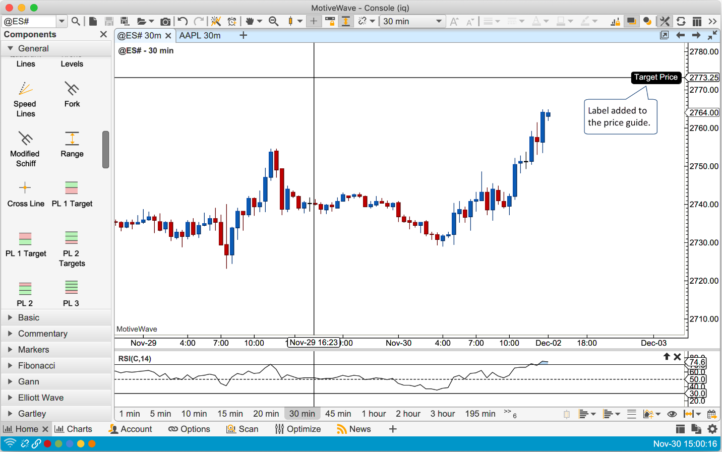 Auto Wave Tool - Select a section of the chart and MotiveWave will automatically fill in the best patterns within that section. You can adjust where the pattern is at any time.