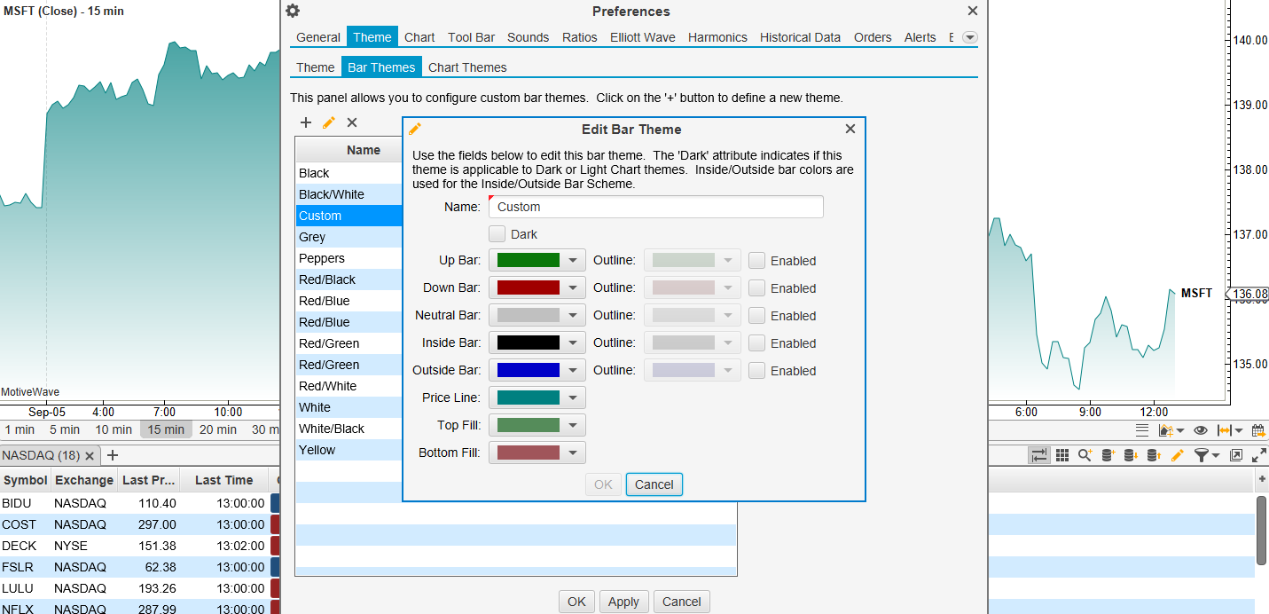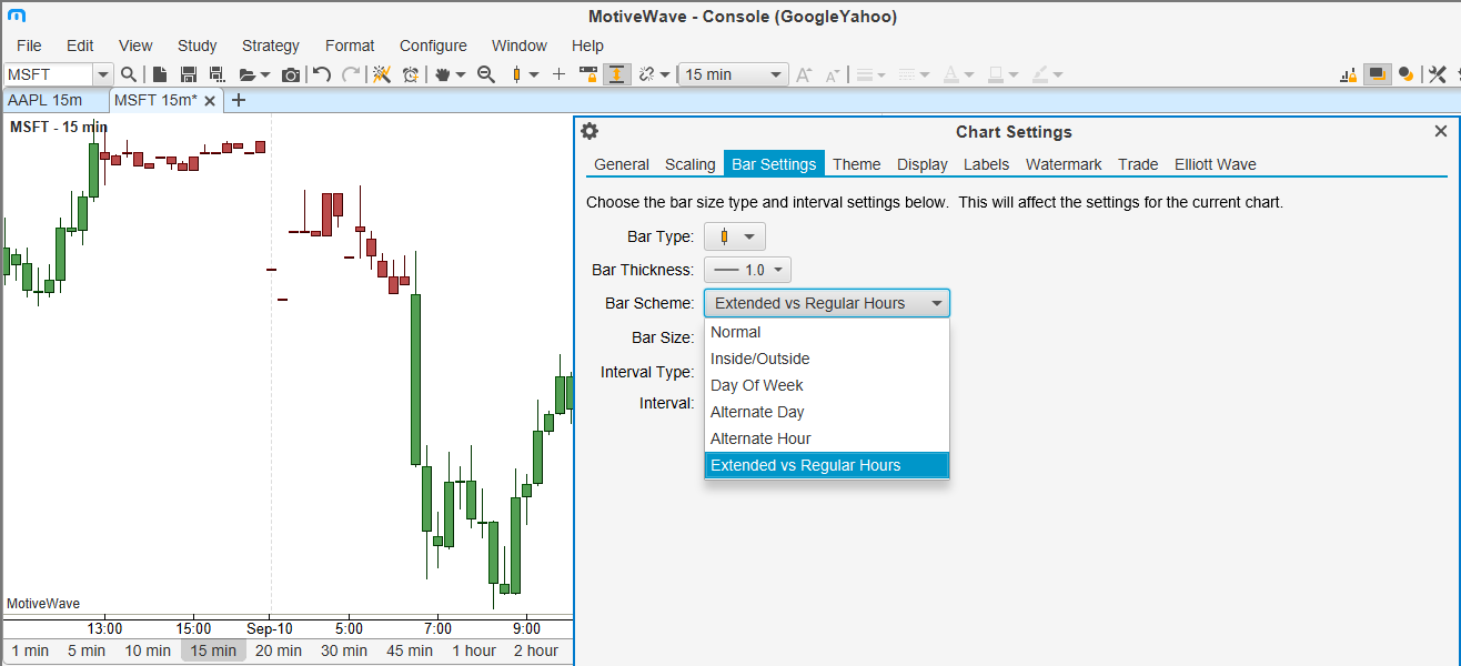 A new bar scheme has been added to color the extended and regular trading hours bars differently.