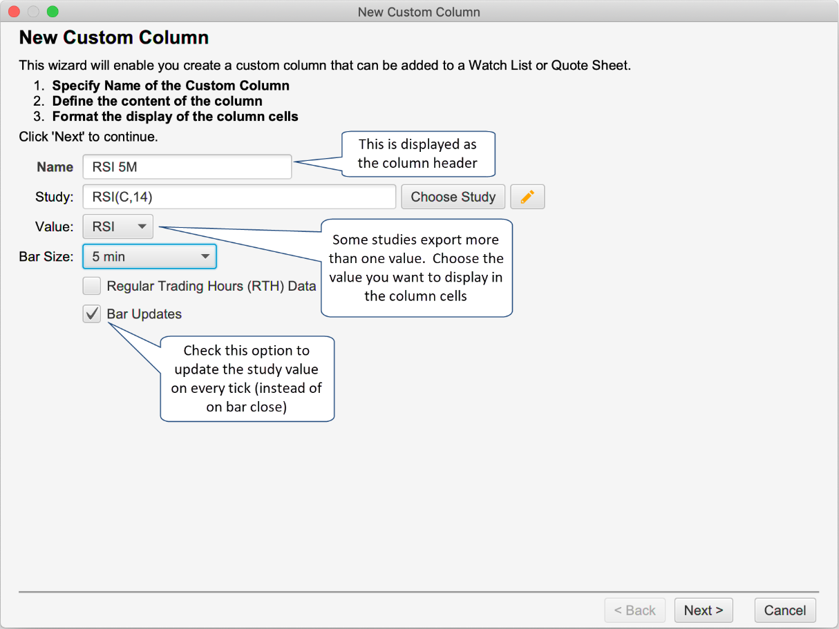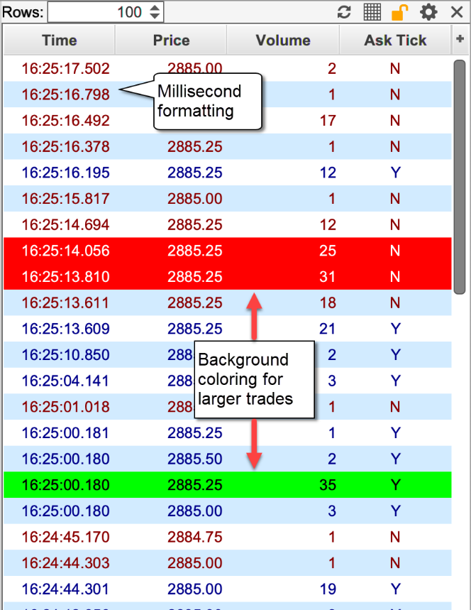 allowTickFilter – If true, the user will be given the option to set a min and or max trade size to be filtered before passing the data to the study.