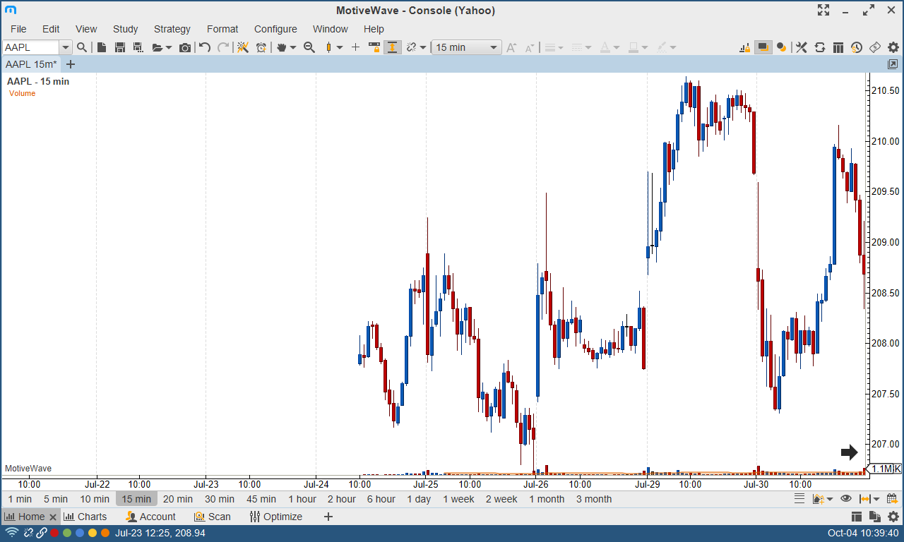 Depending on which broker/data service you are using, MotiveWave will receive and store historical bars in one or more of the following sizes (raw bar sizes): 1 min, 5 min, 30 min and 120 min.