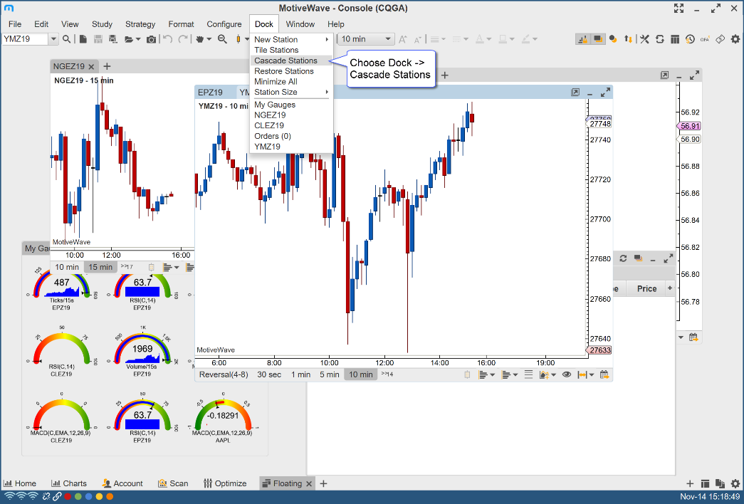 Station Access - All visible and minimized stations may be accessed directly from this menu
