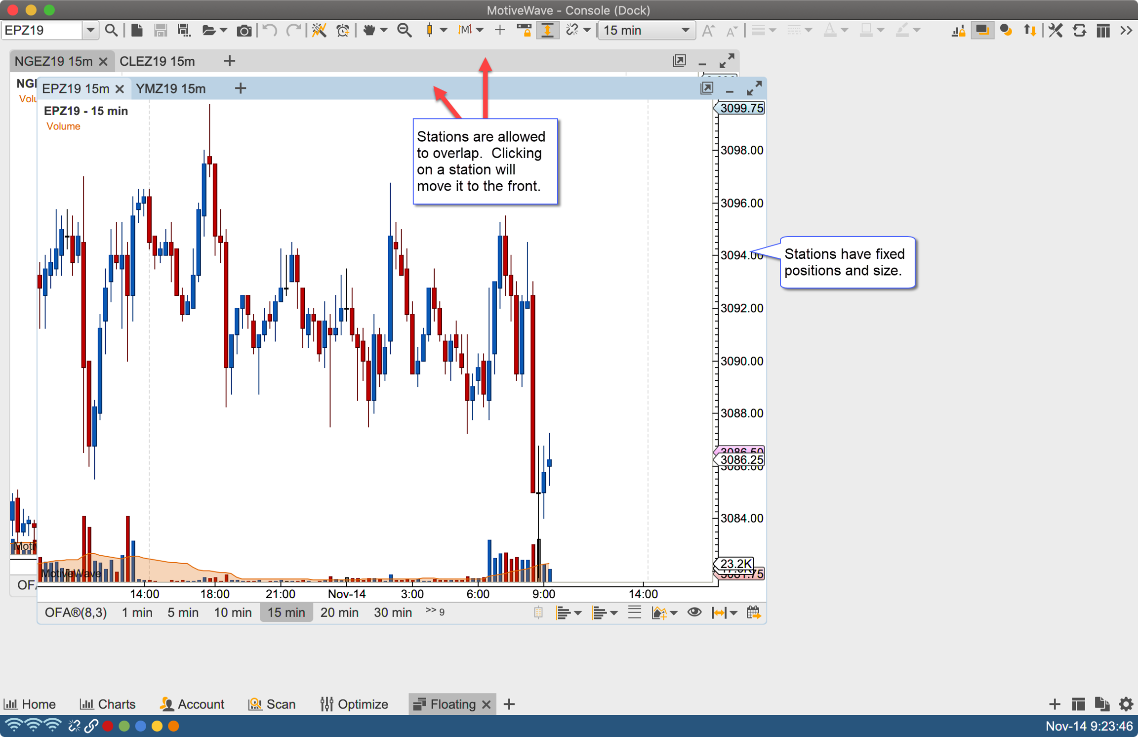 Floating stations provide an alternative to split layouts. In contrast, the stations have fixed locations and sizes. The stations may also overlap other stations similar to application windows.