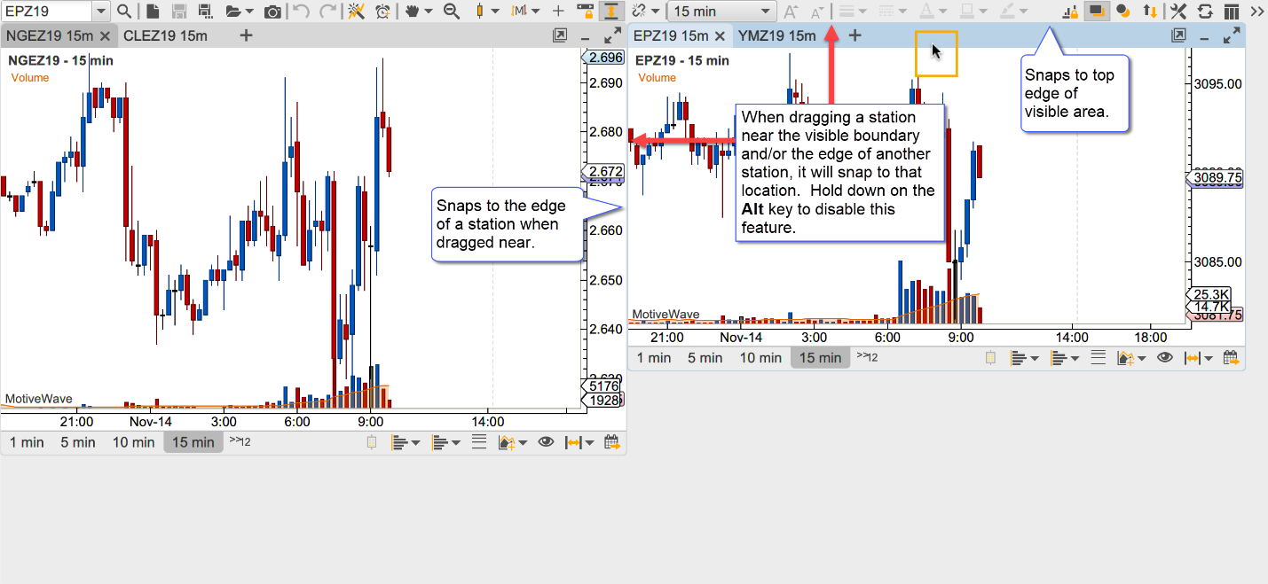 For convenience resizing the top, bottom or sizes of a station that has been snapped to another station will resize those station(s) as well. This behavior can be turned off by holding down on the Alt key.