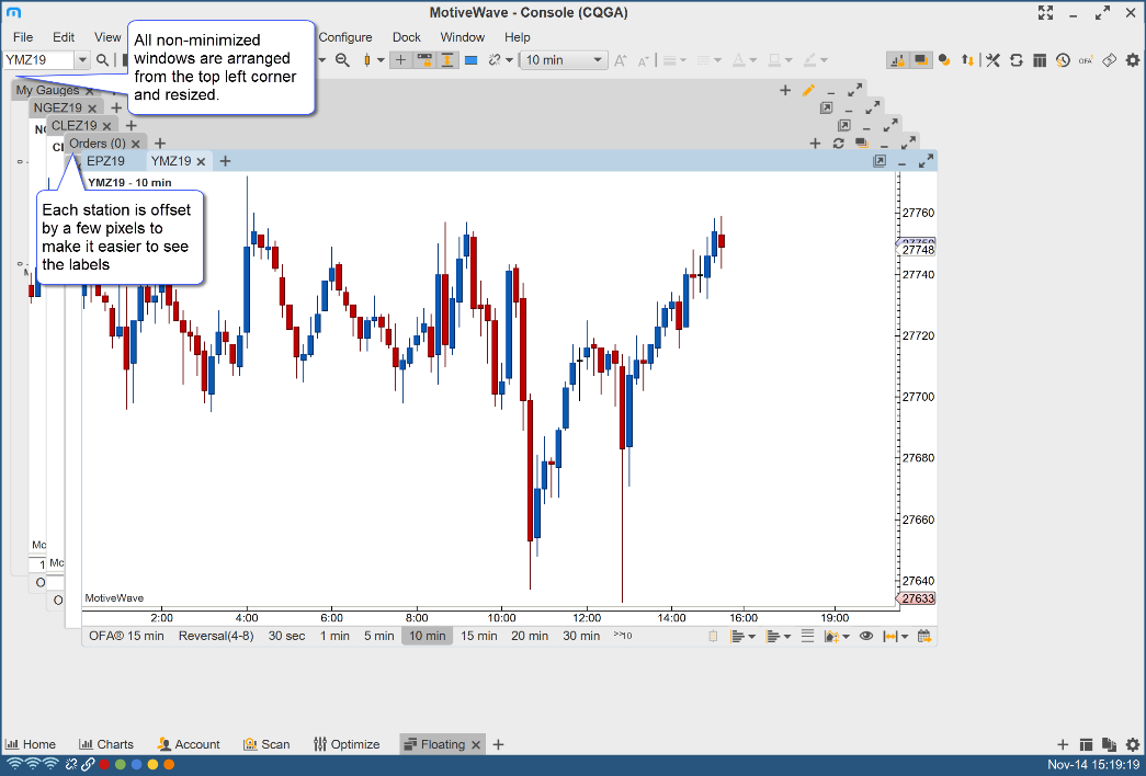 Arranges the non-minimized stations from the top left corner of the content area and offsets them by a few pixels so the tab labels are visible.
