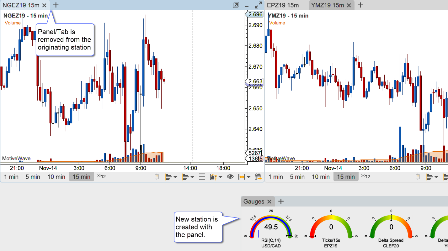 Alternatively, a new station may be created by dragging the tab of an existing panel from its station into an empty section of the content area.