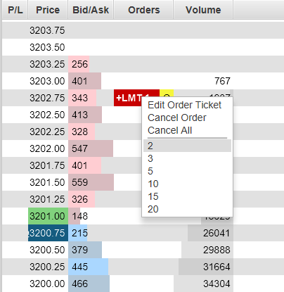 Context Menu – The context menu (right click) shows pre-set quantities for quickly modifying the order quantity.