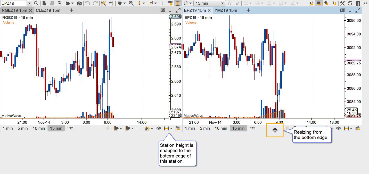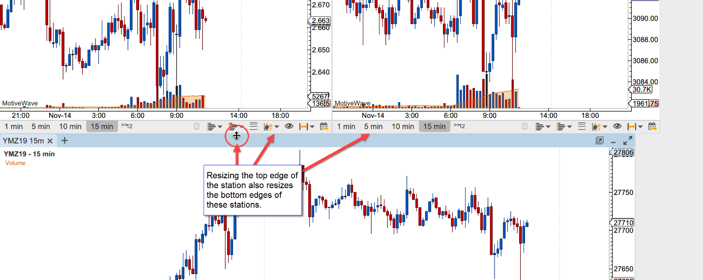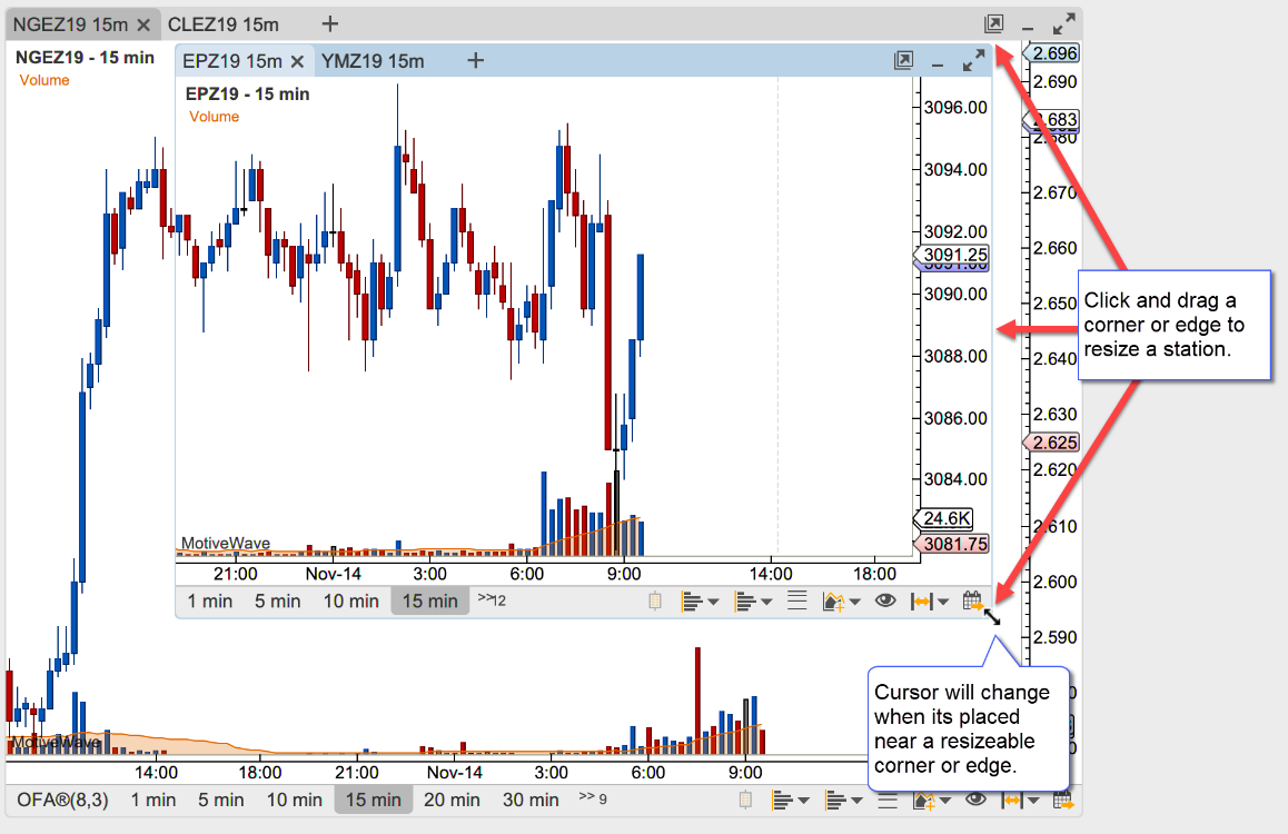 Similar to application windows, stations may be resized by dragging the corners or edges of the stations.