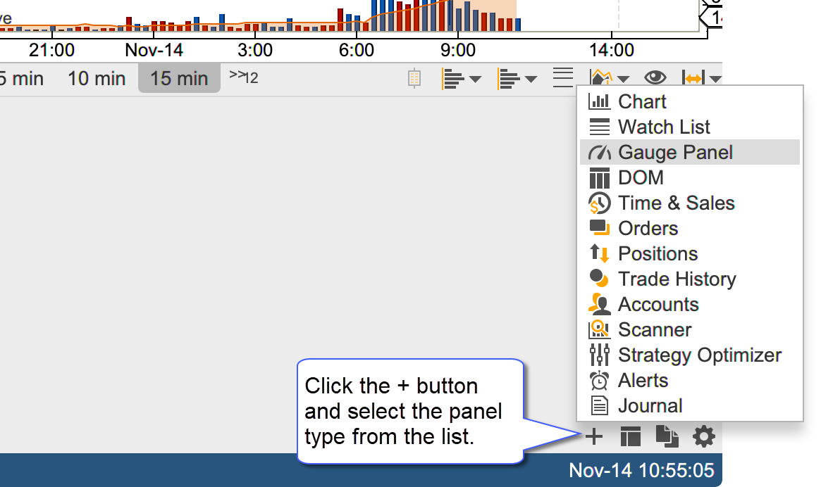 The following screen shots illustrate the first 3 options for accessing the New Station menu. This menu contains the available panel types similar to the new panel button in the tab bar of a station. Select the desire panel type to create a new station.