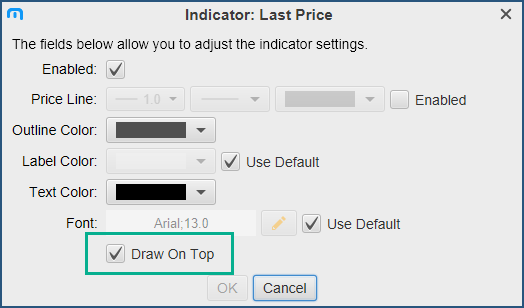 Added an option to draw an indicator on top of the other indicators. This is on by default for Bid, Ask and Last price. This feature is also available for study indicators (see advanced properties).