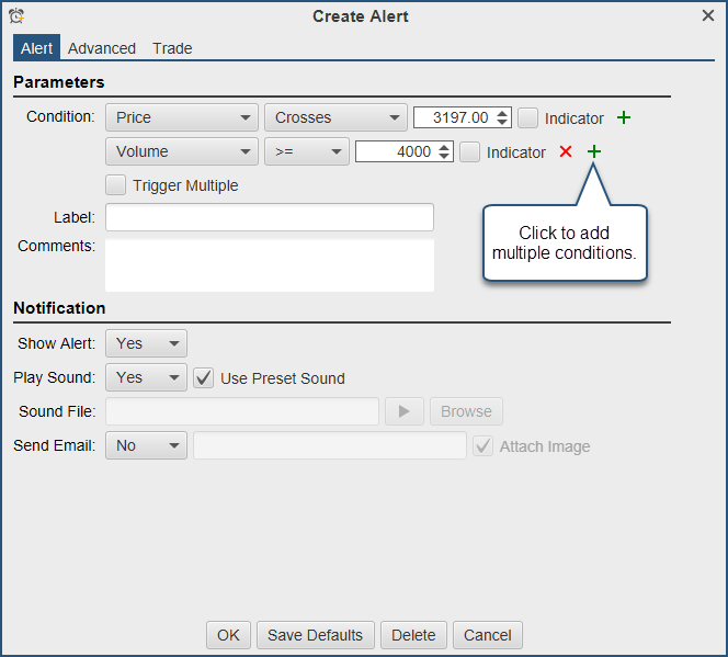 Multiple alert conditions are now allowed when creating/modifying an alert.