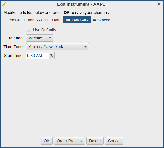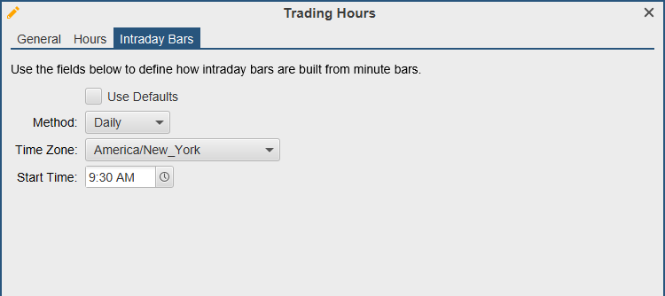 The method for configuring how intraday bars is built can now be configured per instrument via the Edit Instrument dialog. This allows for greater flexibility.