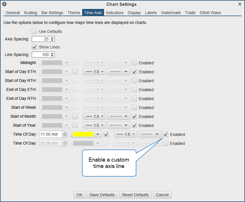 Custom lines can be displayed at specific times of day (E.g. 11:00am).