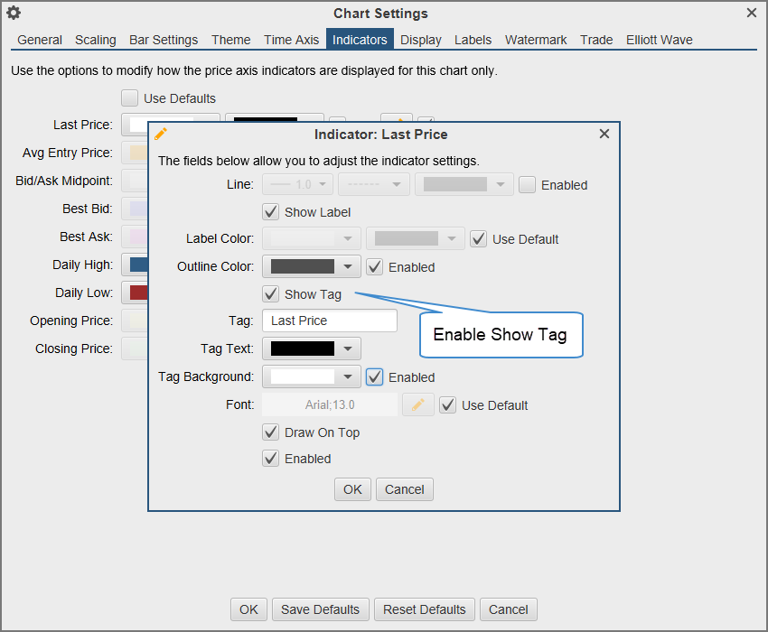 Optionally a tag may be assigned to an indicator. This tag displays the given text to the left of the indicator.