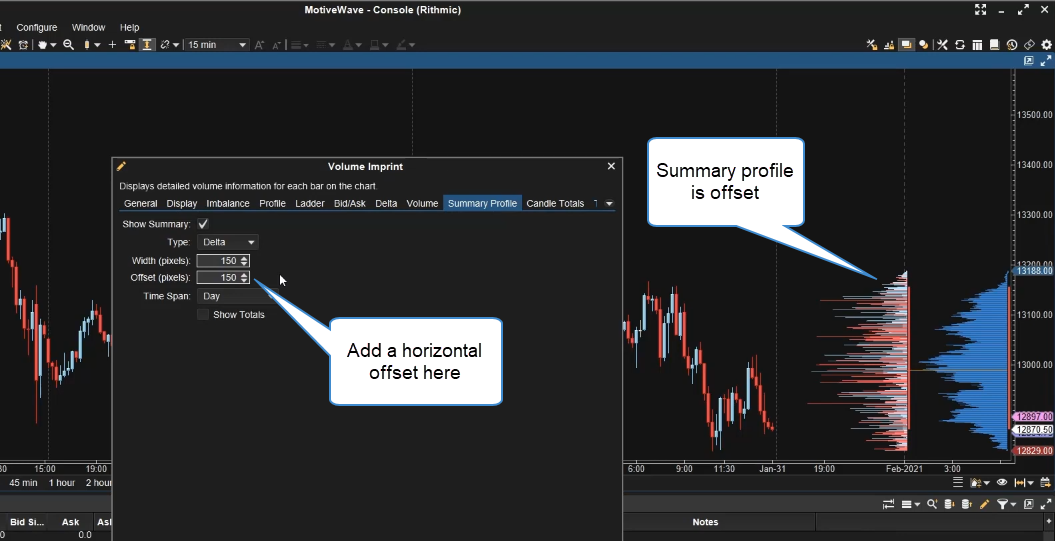 A horizontal offset can be added to the Summary Profile, this will allow you to display two profiles without overlap.