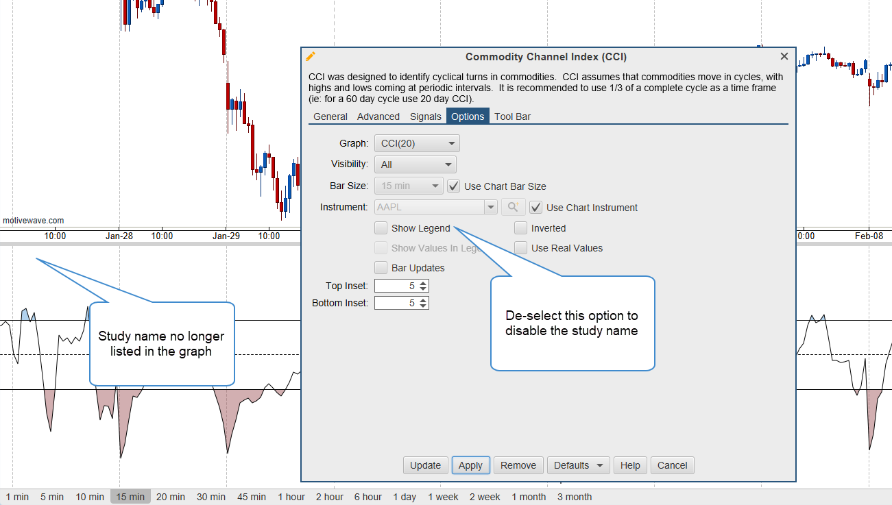 Study Graph – Ability to remove the display of the study title (See Options tab, “Show Legend”).