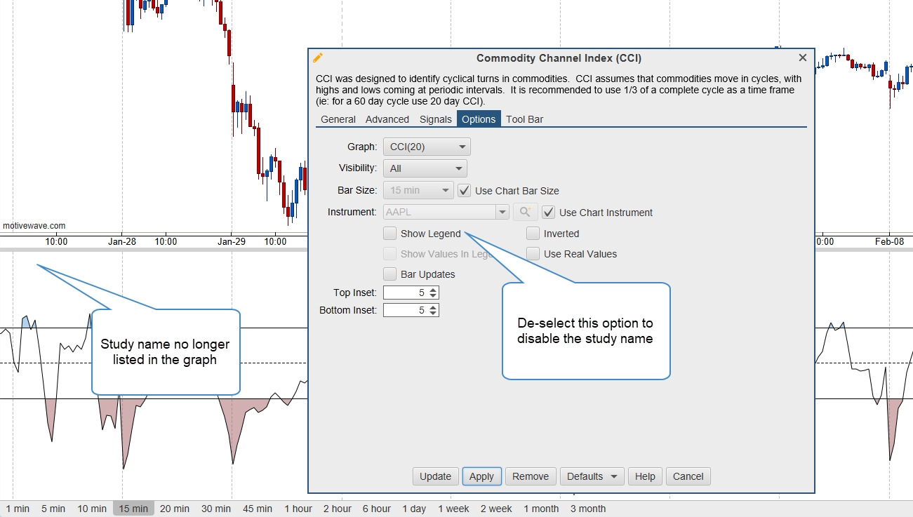 - Study Graph – Ability to remove the display of the study title (See Options tab, “Show Legend”).