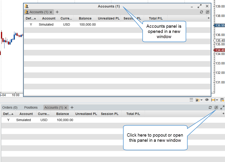 Popout Panels – A popout (open in new window) option has been added to more panels in the console: Accounts, Positions, Orders, Trades, Optimizer, Alerts, Trade Report, Options, and Journal.