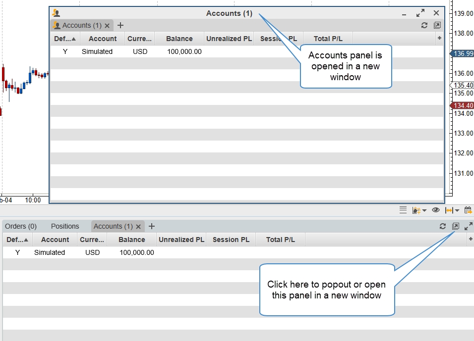 - Popout Panels – A popout (open in new window) option has been added to more panels in the console: Accounts, Positions, Orders, Trades, Optimizer, Alerts, Trade Report, Options, and Journal.