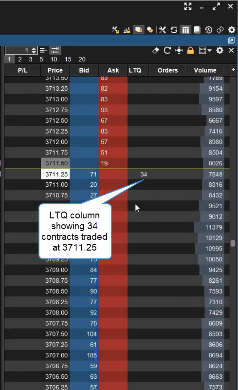 A new DOM column was added which shows the cumulative total of contracts traded since a trade was completed at another price. This column resets each time a trade occurs at a different price.