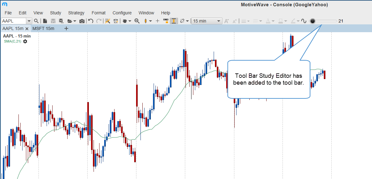 Study controls can now be added to the tool bar and are also accessible from a new study quick editor.