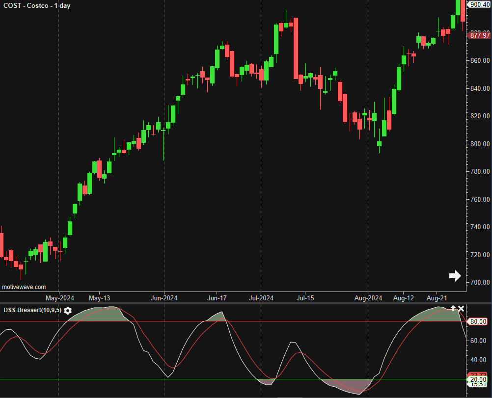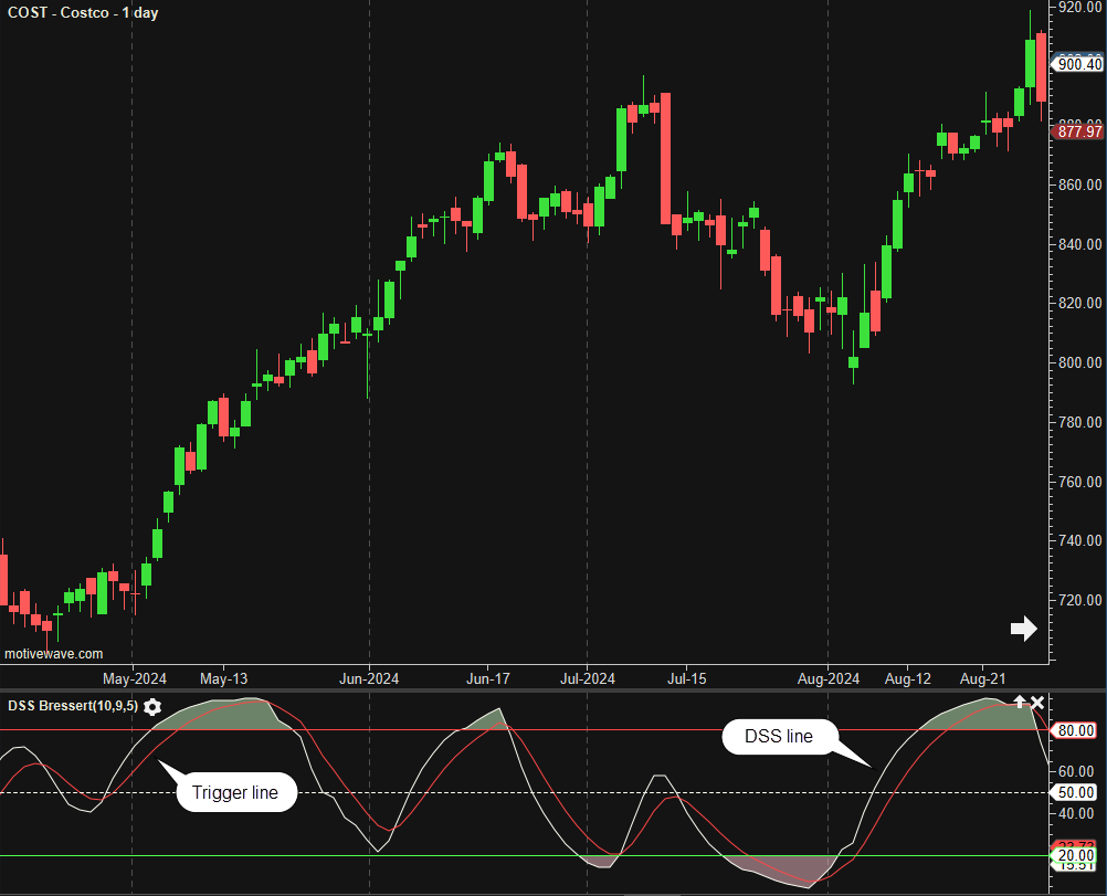 sell = crossedBelow(DSS, SDSS) AND dss moreThan topGuide AND dss moreThan highSell;