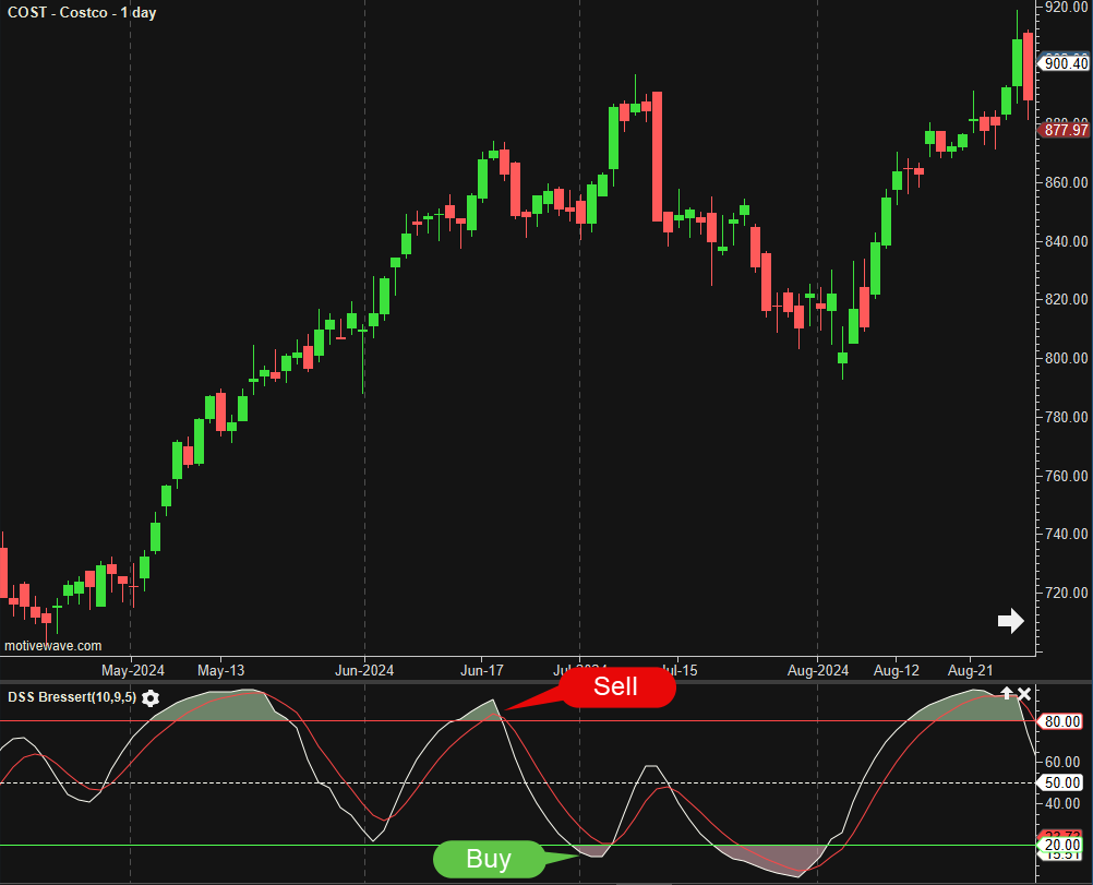 DSS Bressert might be used in conjunction with other indicators, especially with long-term trend filters and volume analysis for confirmation.