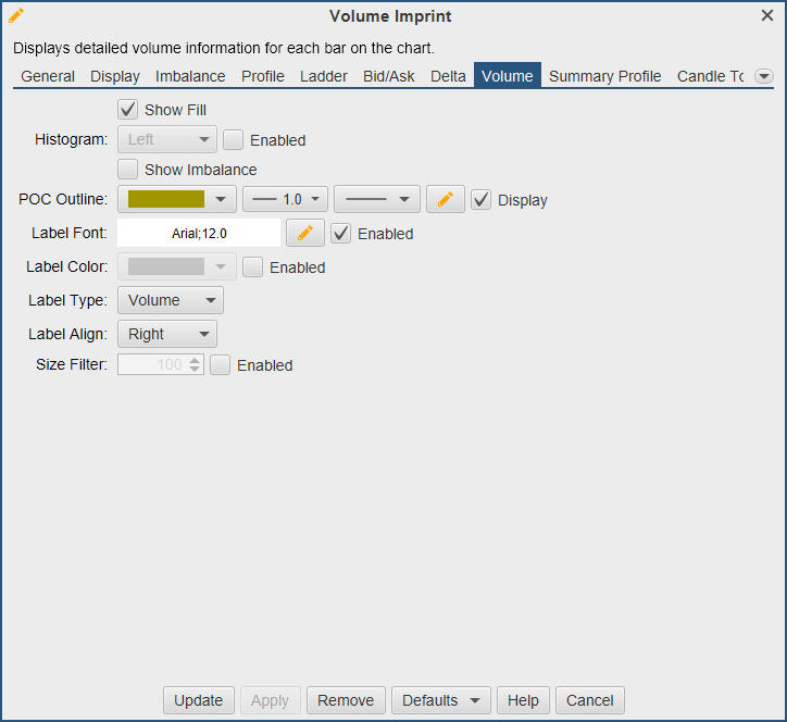 Label Type – Select from Volume, Profile, Bid/Ask or Delta.