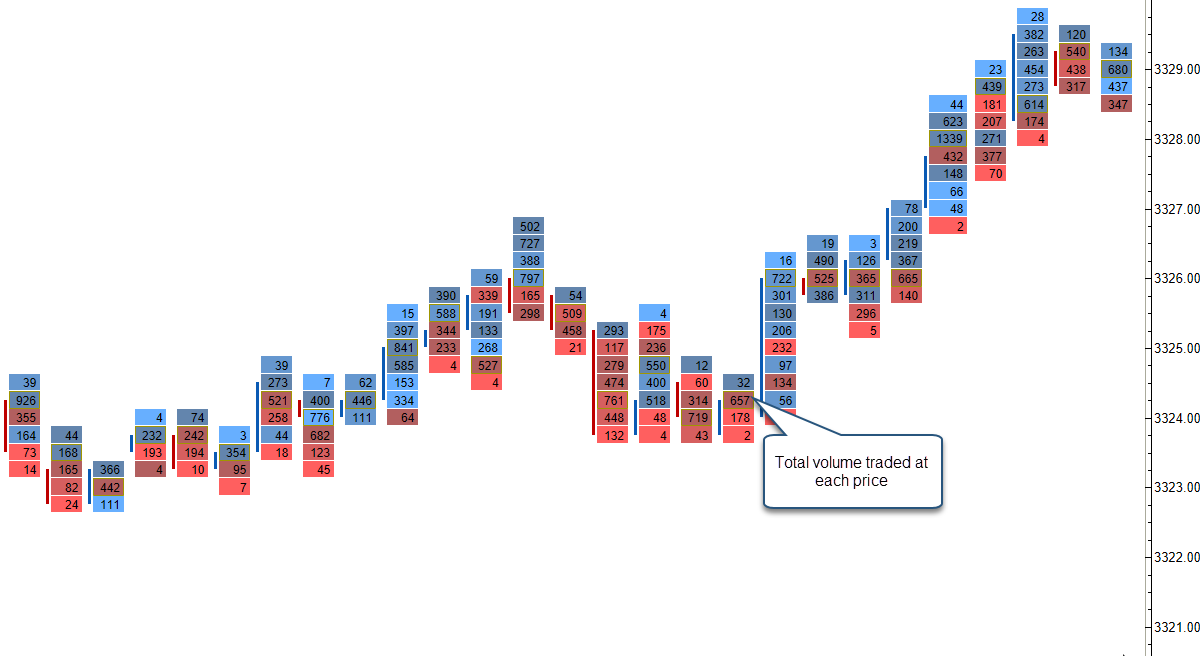 Volume – Displays the total volume for each price level.