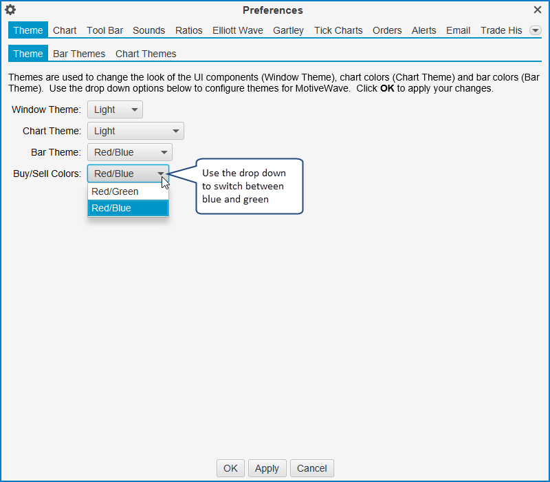 Study Value Gauges display a value (and recent history) from a built-in or custom study. Select/configure a study and choose the value from the study that you would like to display. For live/real time updates select the Bar Updates option.