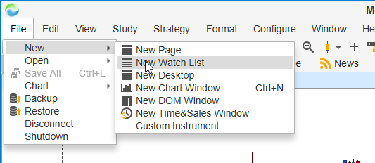 Import Watchlist – Use this option to import a watchlist to MotiveWave